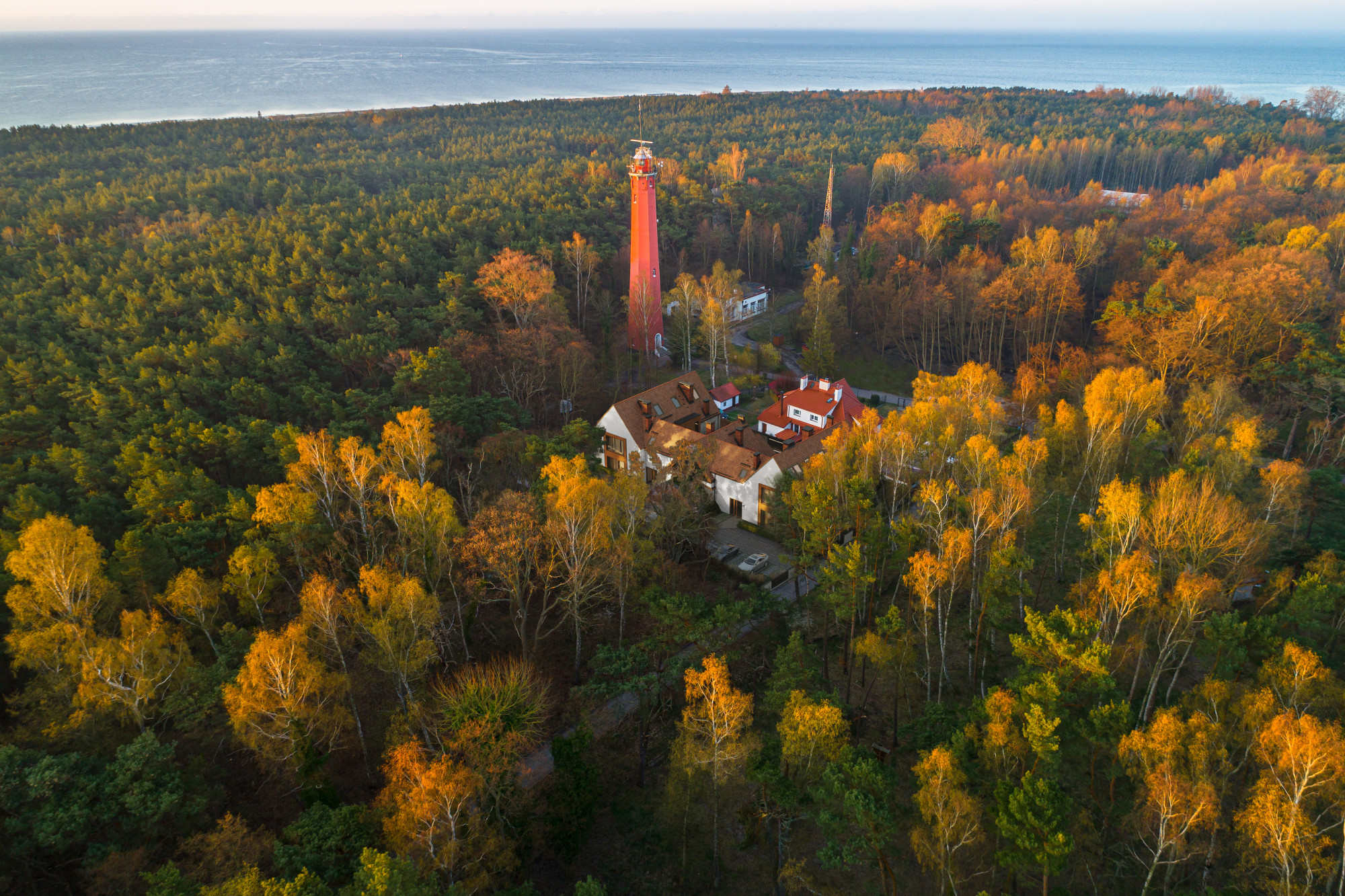 Bezpośrednie sąsiedztwo: Historyczna latarnia morska i sosnowy las.