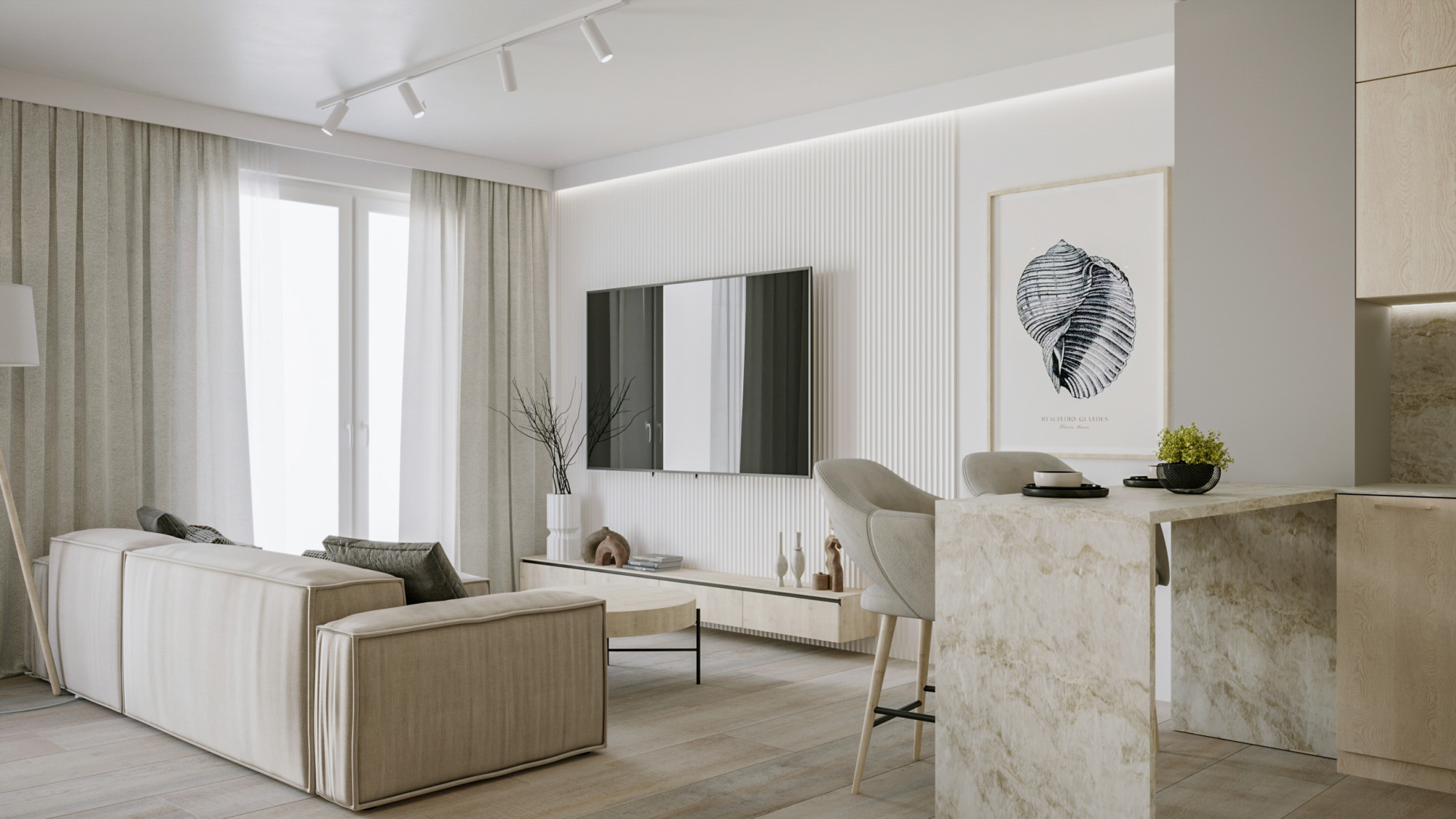 Elastyczność: Możliwość uzyskania 3 pokoi przy minimalnych zmianach aranżacyjnych.