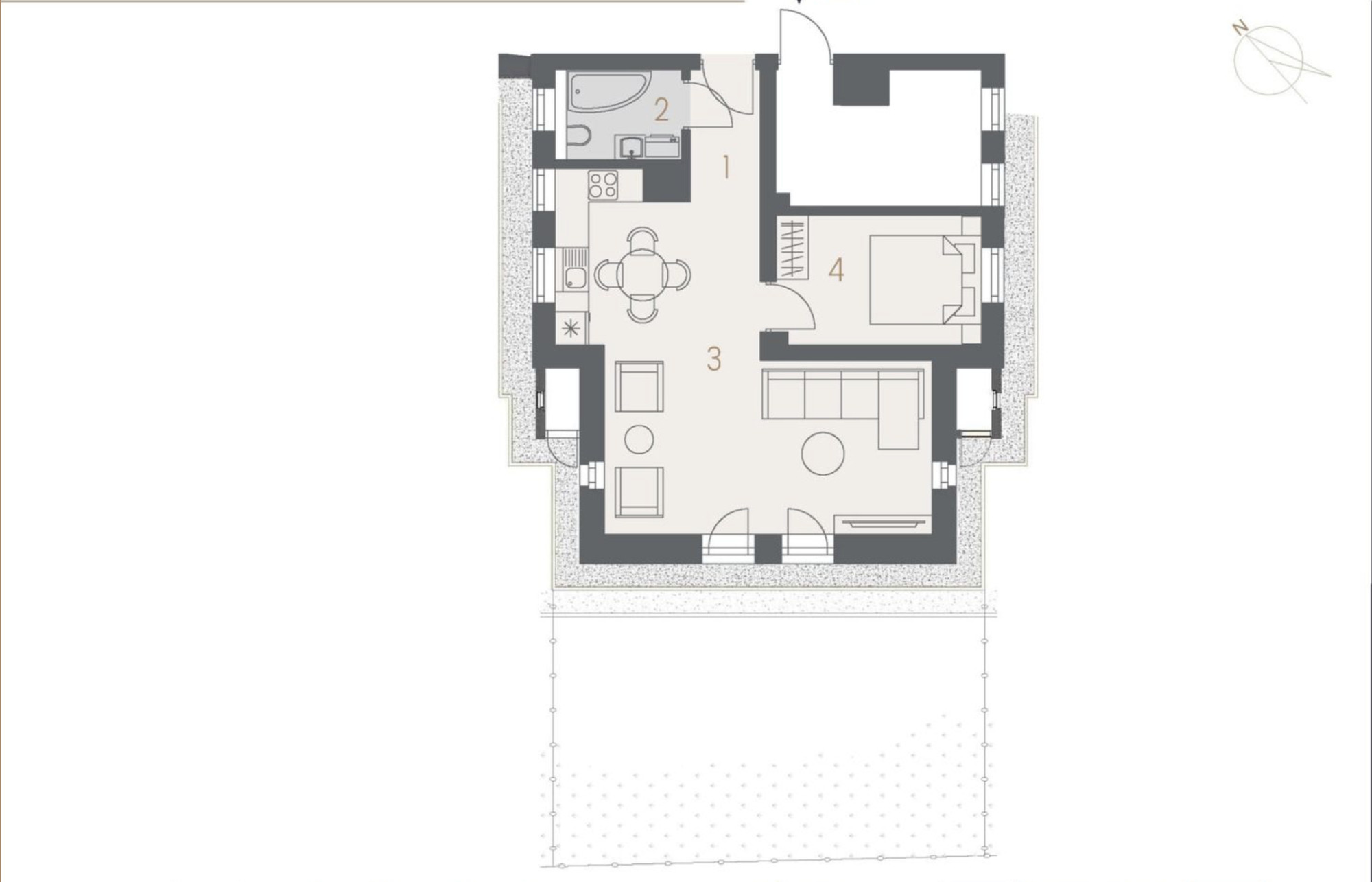 Opcja: Możliwość przeniesienia kuchni do salonu (aneks) i wydzielenia drugiej osobnej sypialni.
