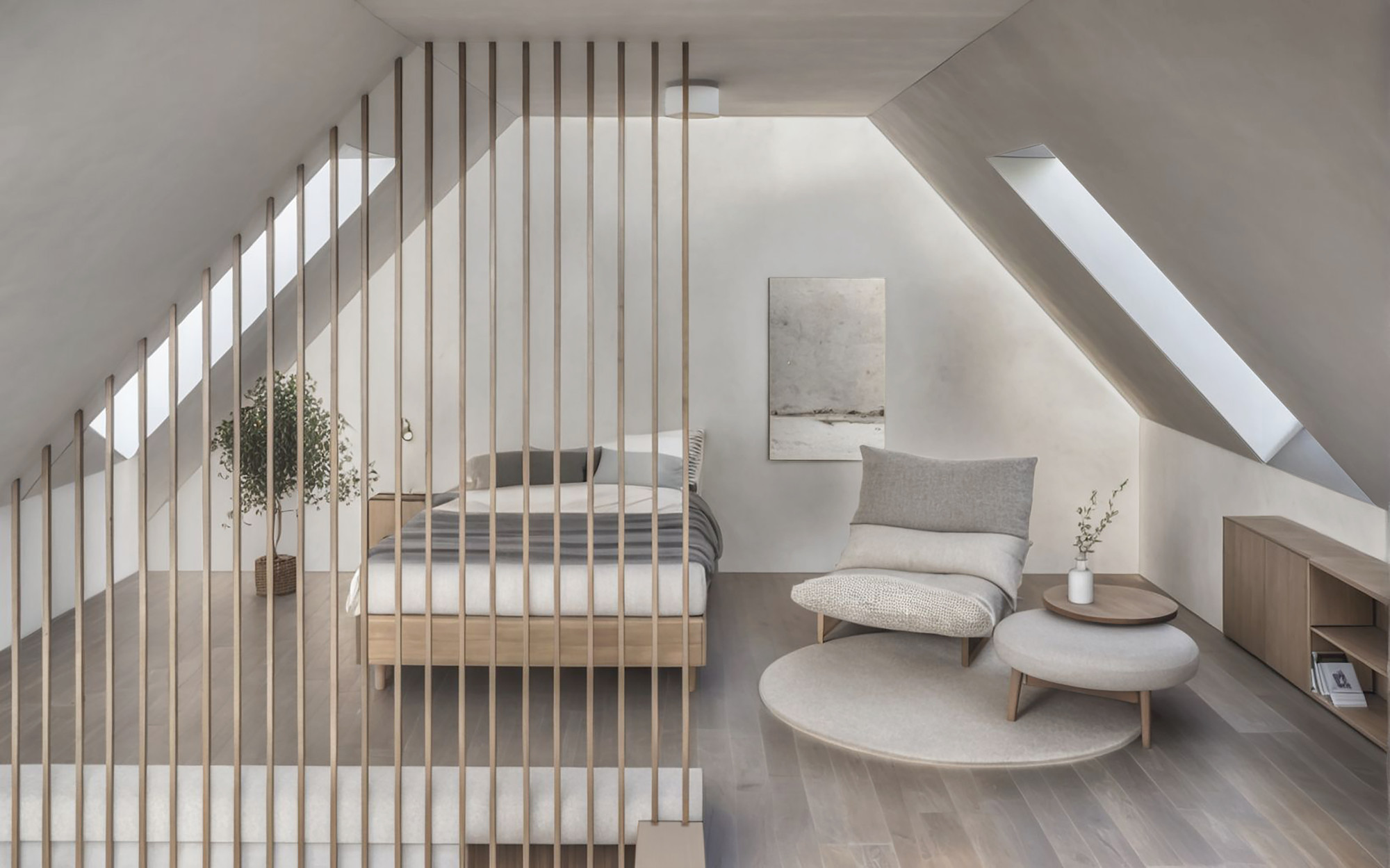 Poczucie przestrzeni: Dzięki delikatnym skosom wnętrze jest optycznie znacznie większe i niezwykle funkcjonalne.