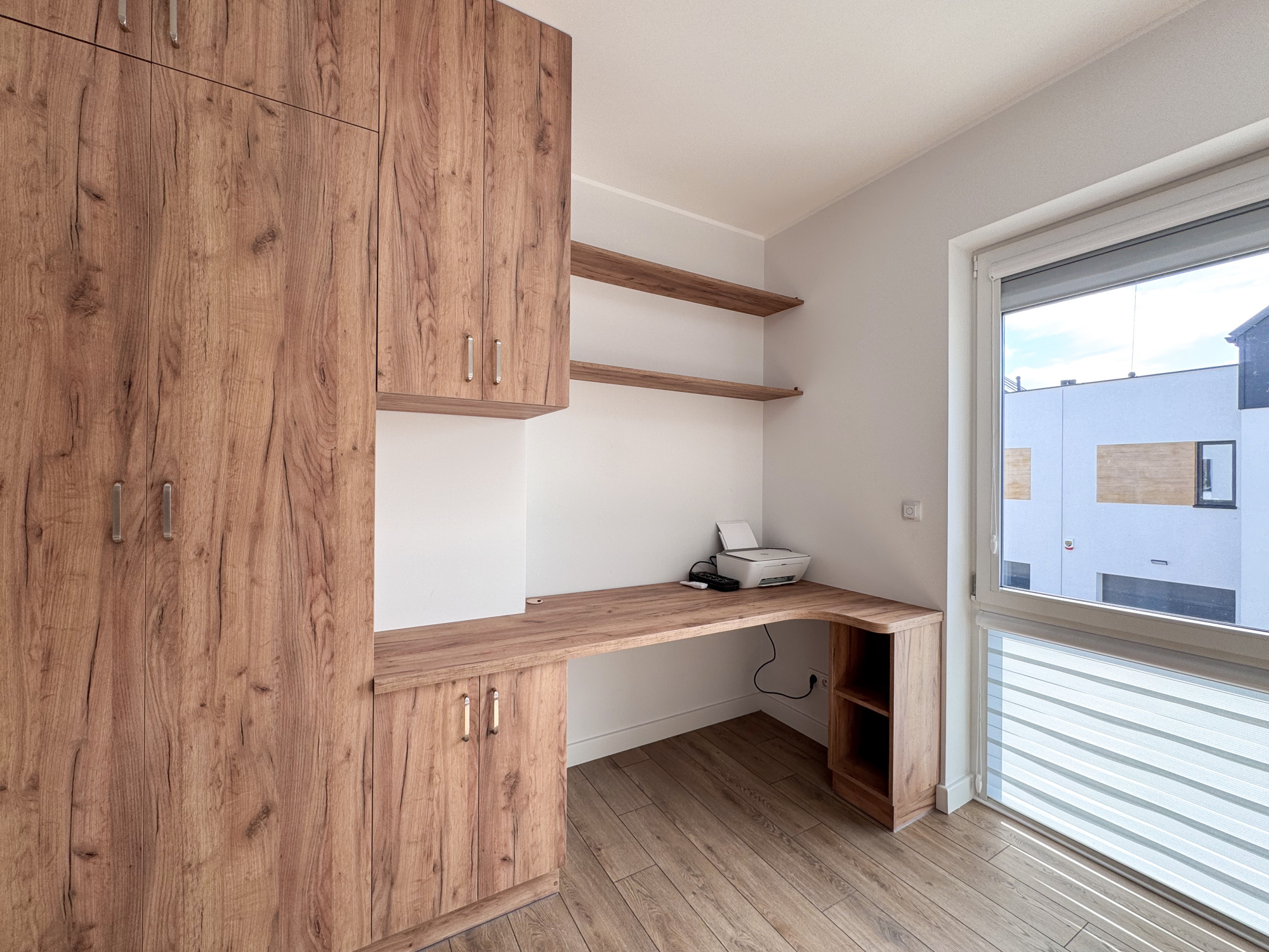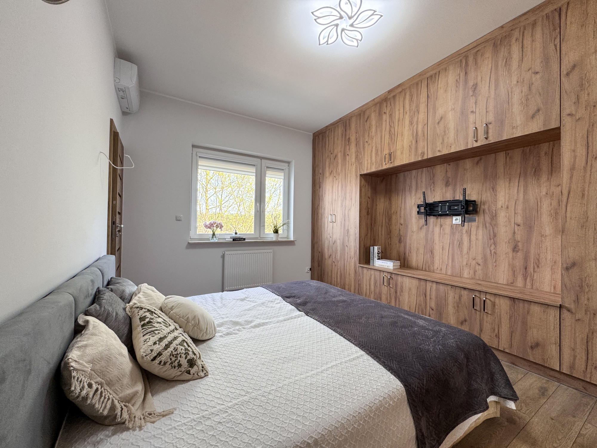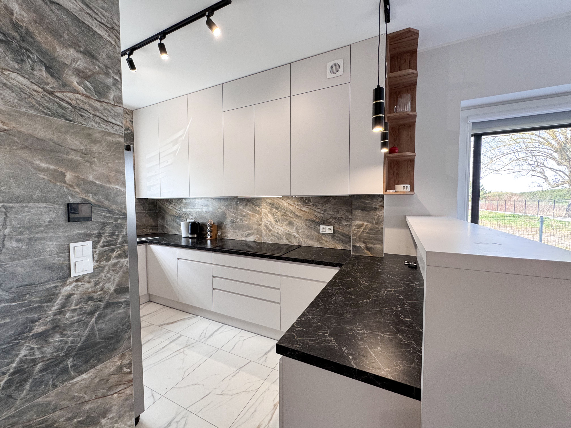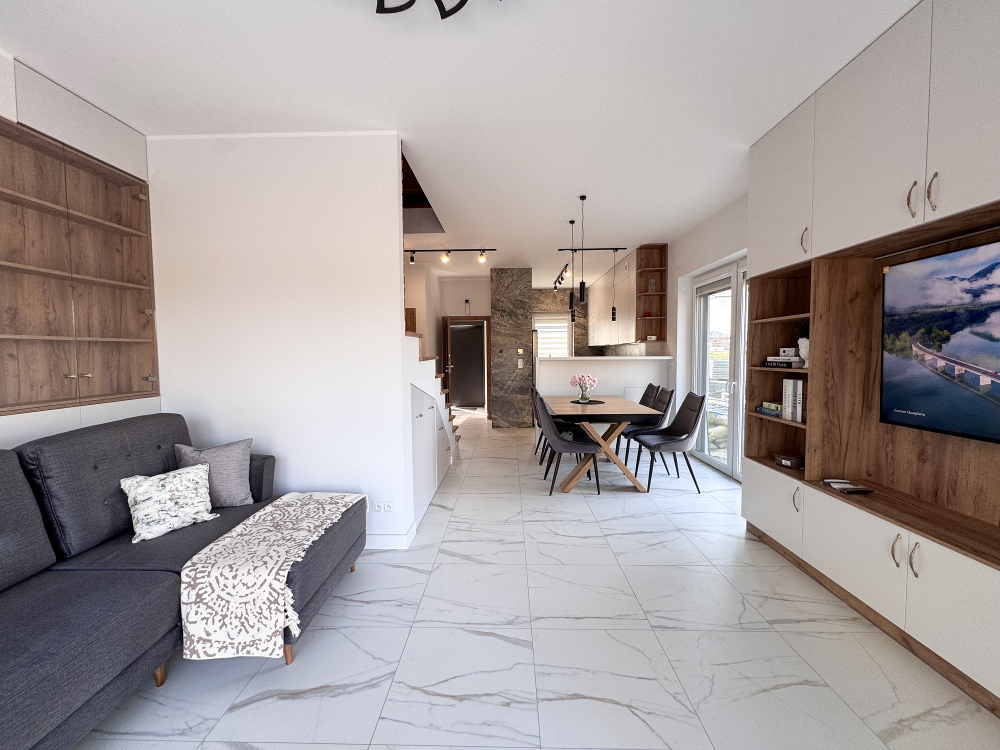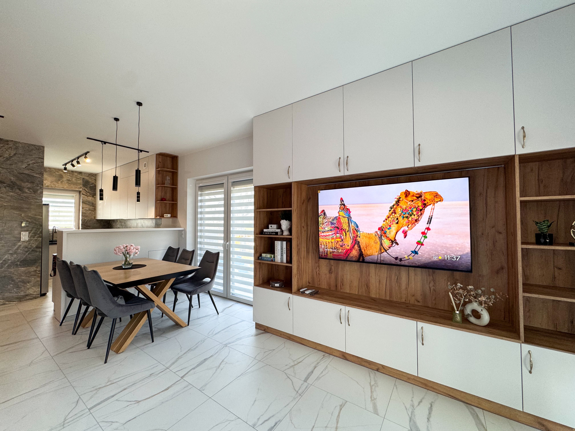 Property & Standard Completed in 2024 and freshly finished to a "turnkey" standard, this home allows you to bypass the stress of renovation. The interiors, designed in a timeless palette of white and natural wood, provide a perfect canvas for your personal style. The kitchen is the heart of the home, featuring premium appliances (including a Samsung side-by-side fridge with an ice maker) and designer fixtures. Modern solutions such as anti-burglary blinds, a video intercom, and a monitoring system ensure comfort and security.