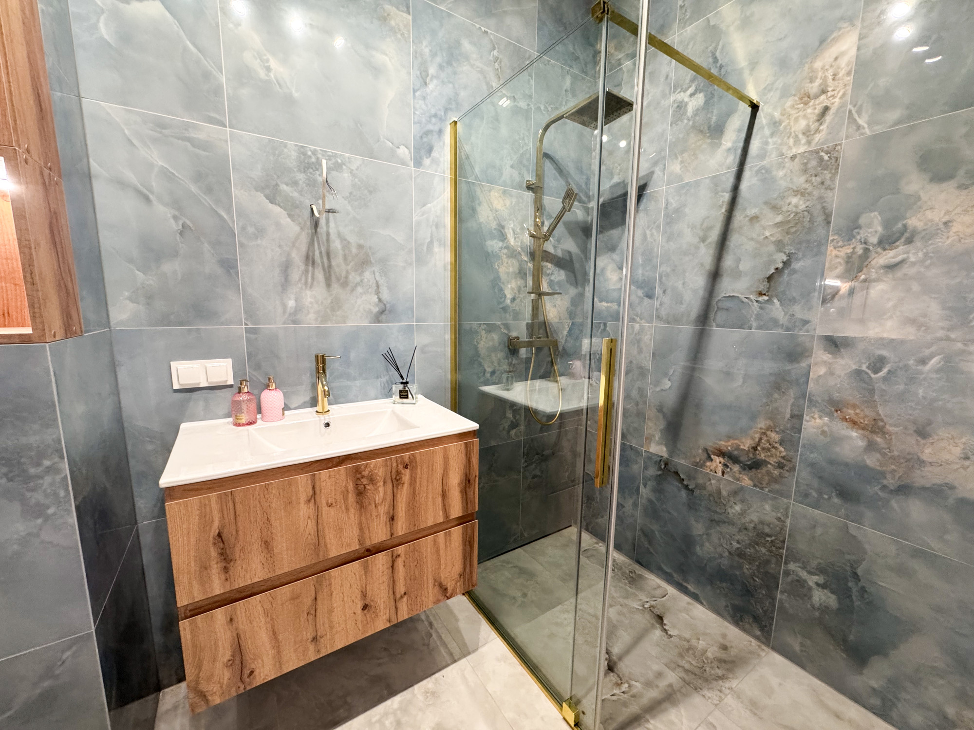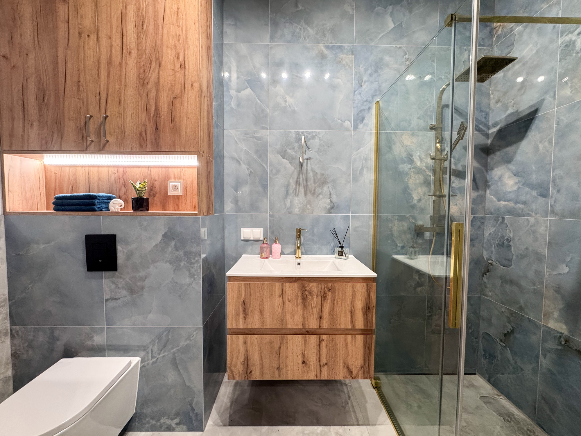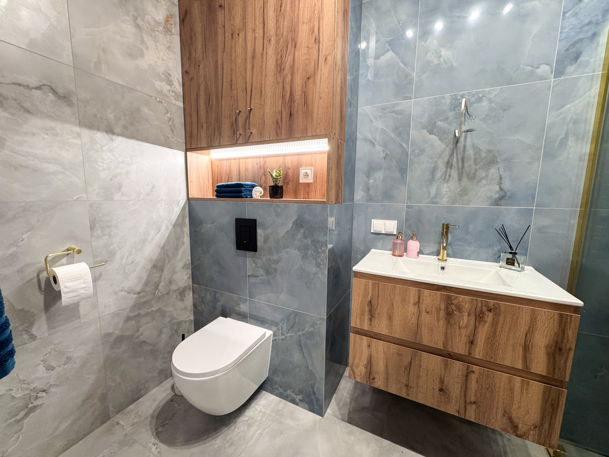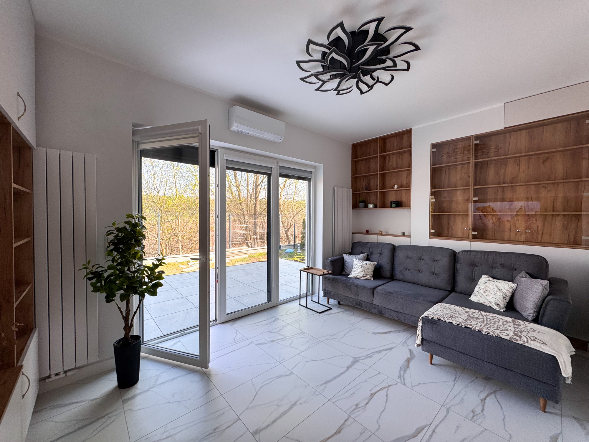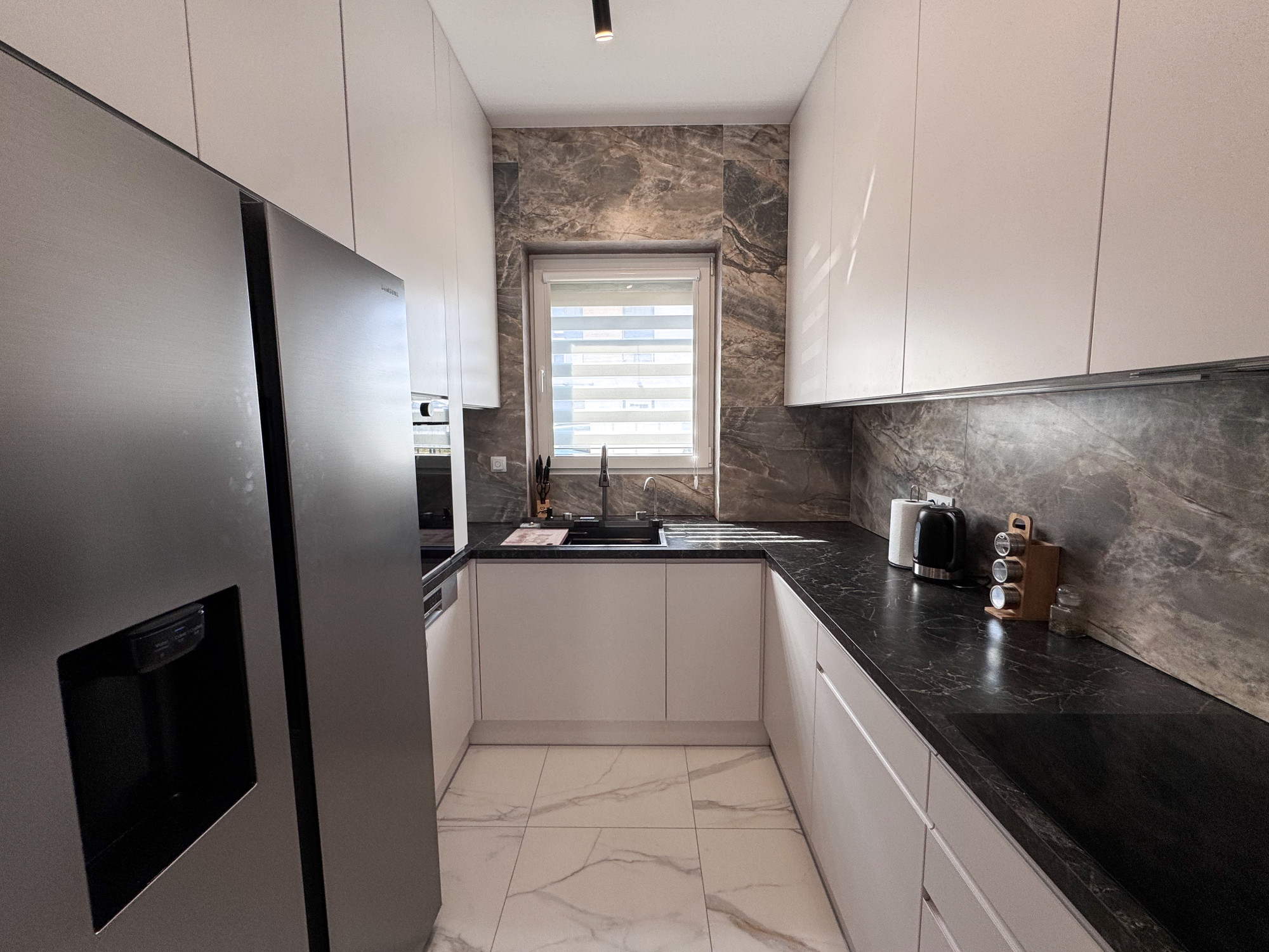 Property & Standard Completed in 2024 and freshly finished to a "turnkey" standard, this home allows you to bypass the stress of renovation. The interiors, designed in a timeless palette of white and natural wood, provide a perfect canvas for your personal style. The kitchen is the heart of the home, featuring premium appliances (including a Samsung side-by-side fridge with an ice maker) and designer fixtures. Modern solutions such as anti-burglary blinds, a video intercom, and a monitoring system ensure comfort and security.