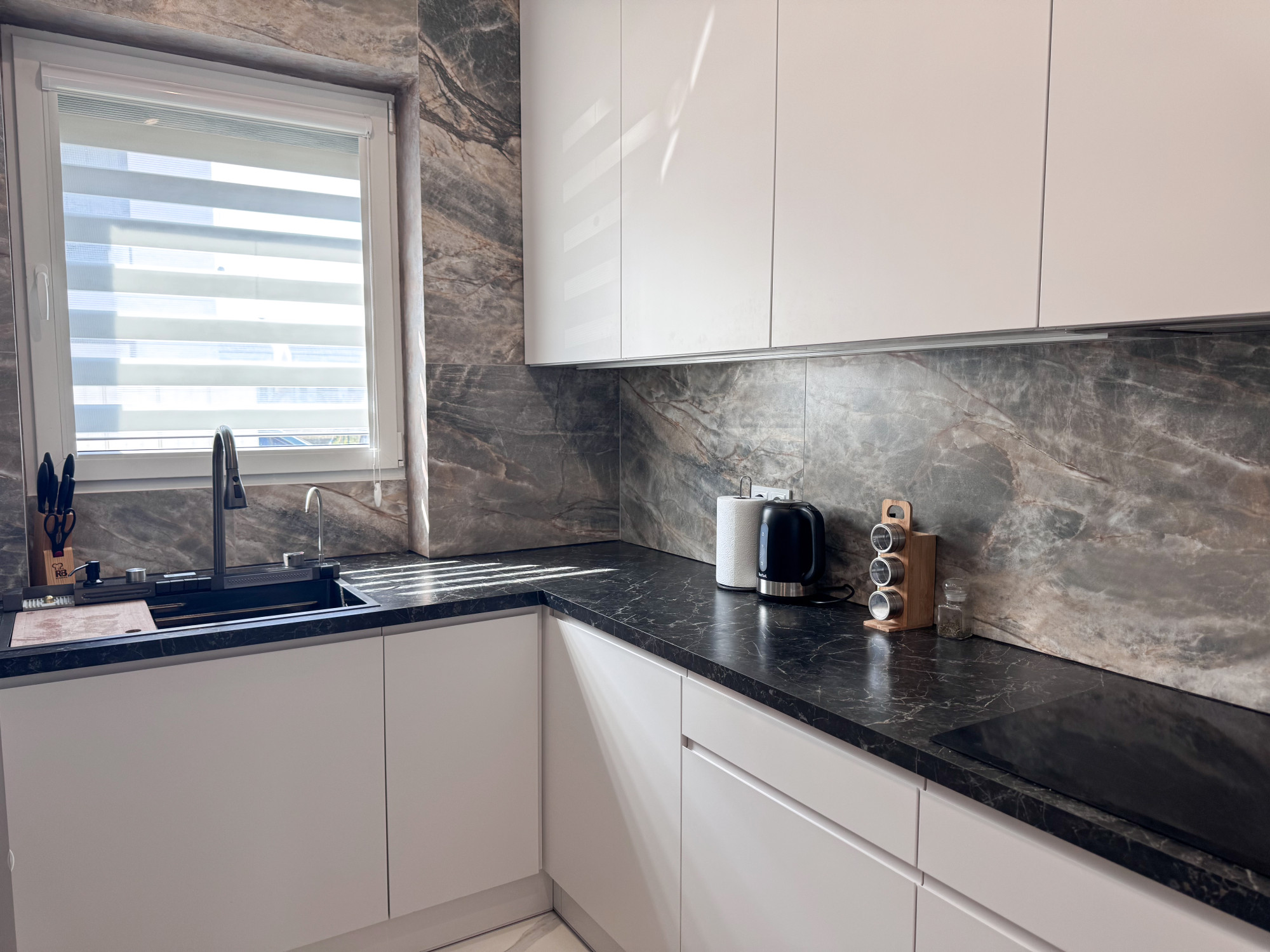 - Widna, w pełni umeblowana kuchnia otwarta na salon.