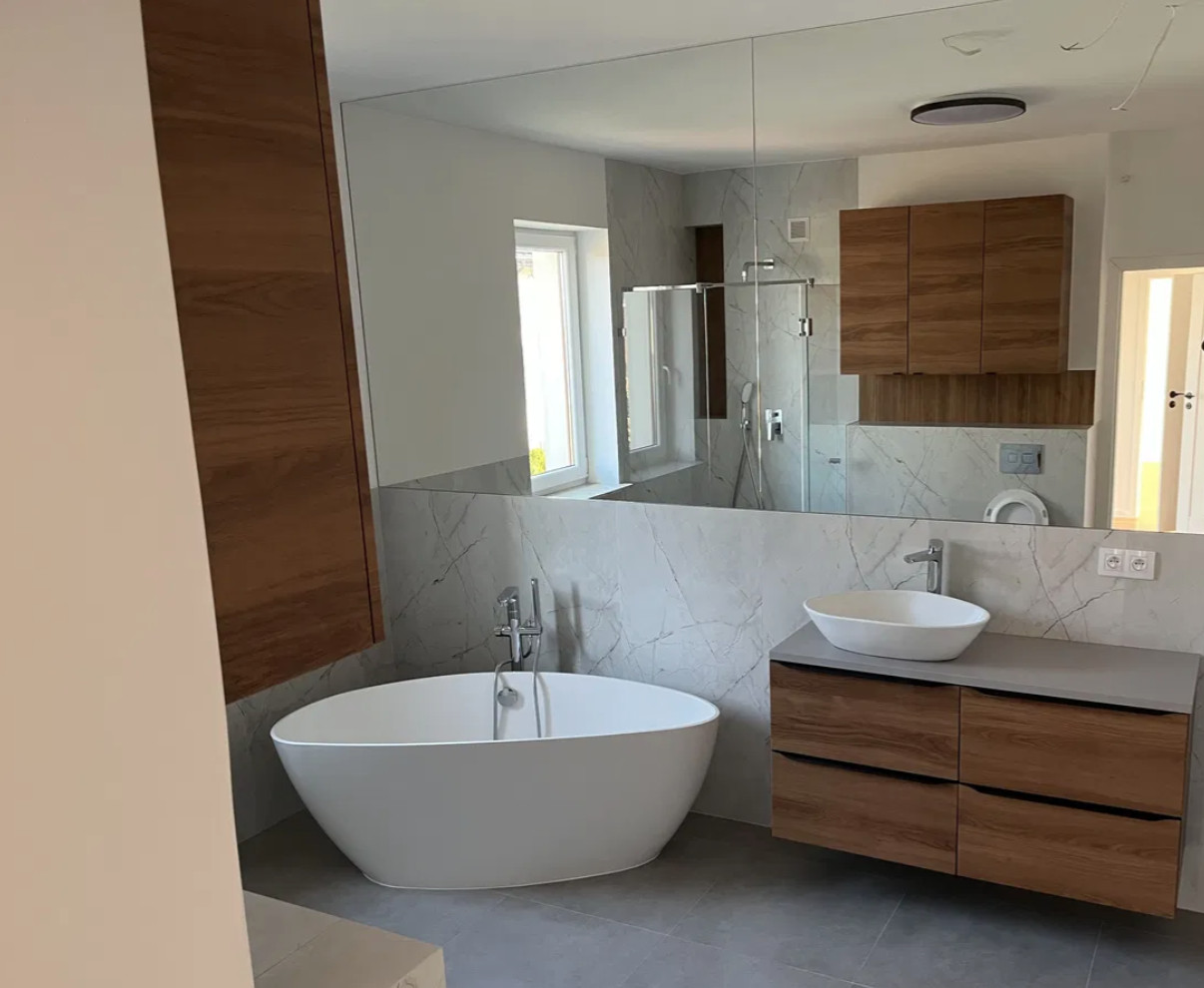 Łazienki wyposażone w kabiny prysznicowe na wymiar.