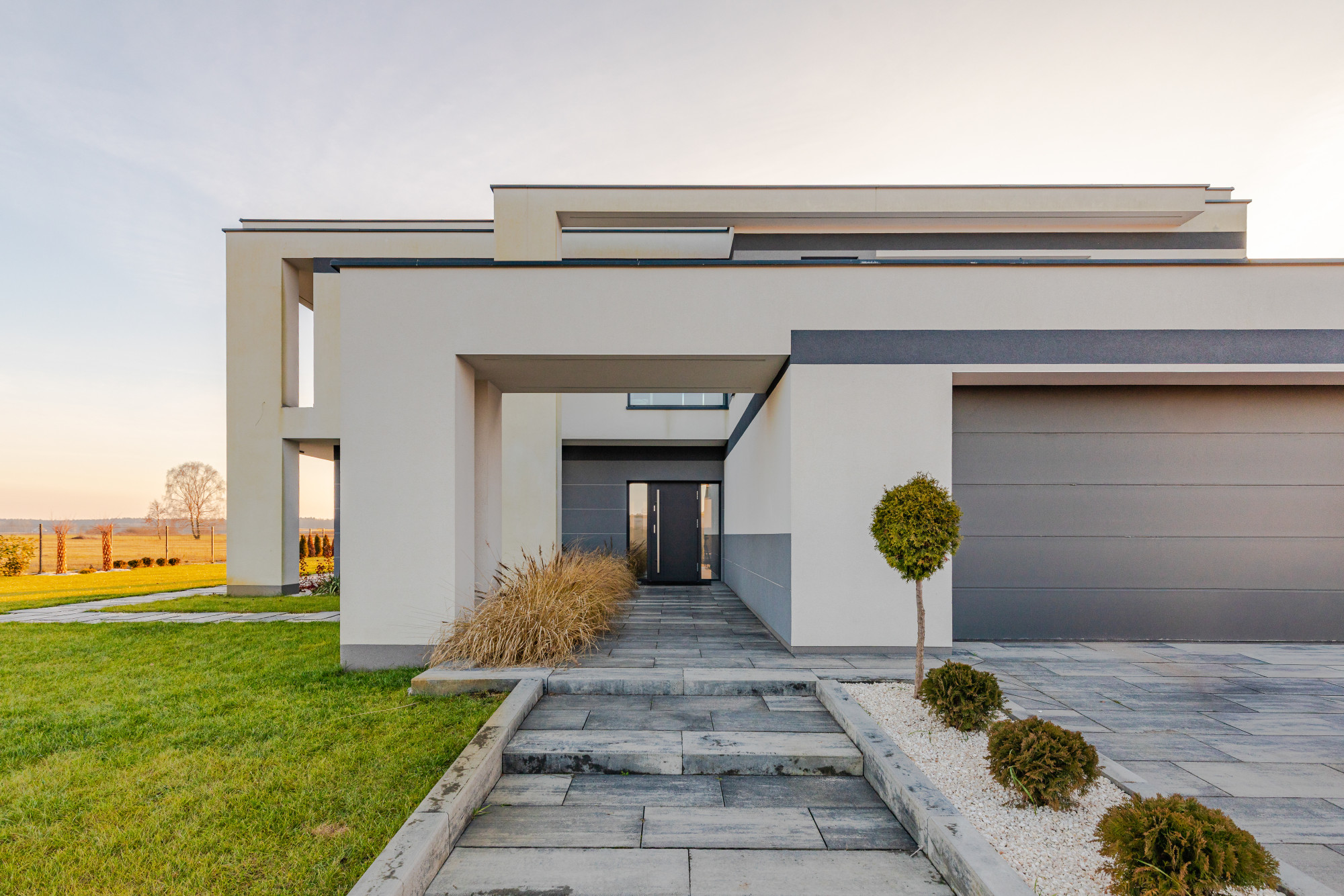 Nowoczesna willa z dużymi oknami pod Warszawie