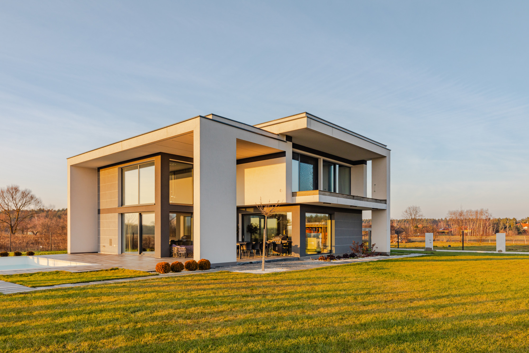Modern villa with large windows near Warsaw