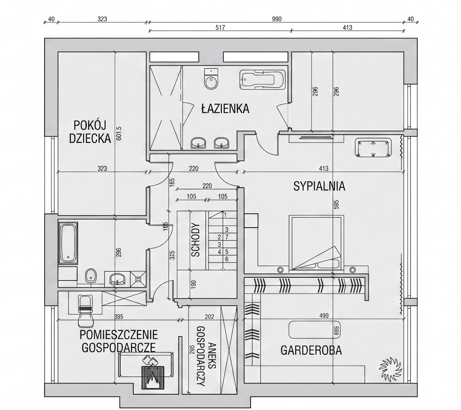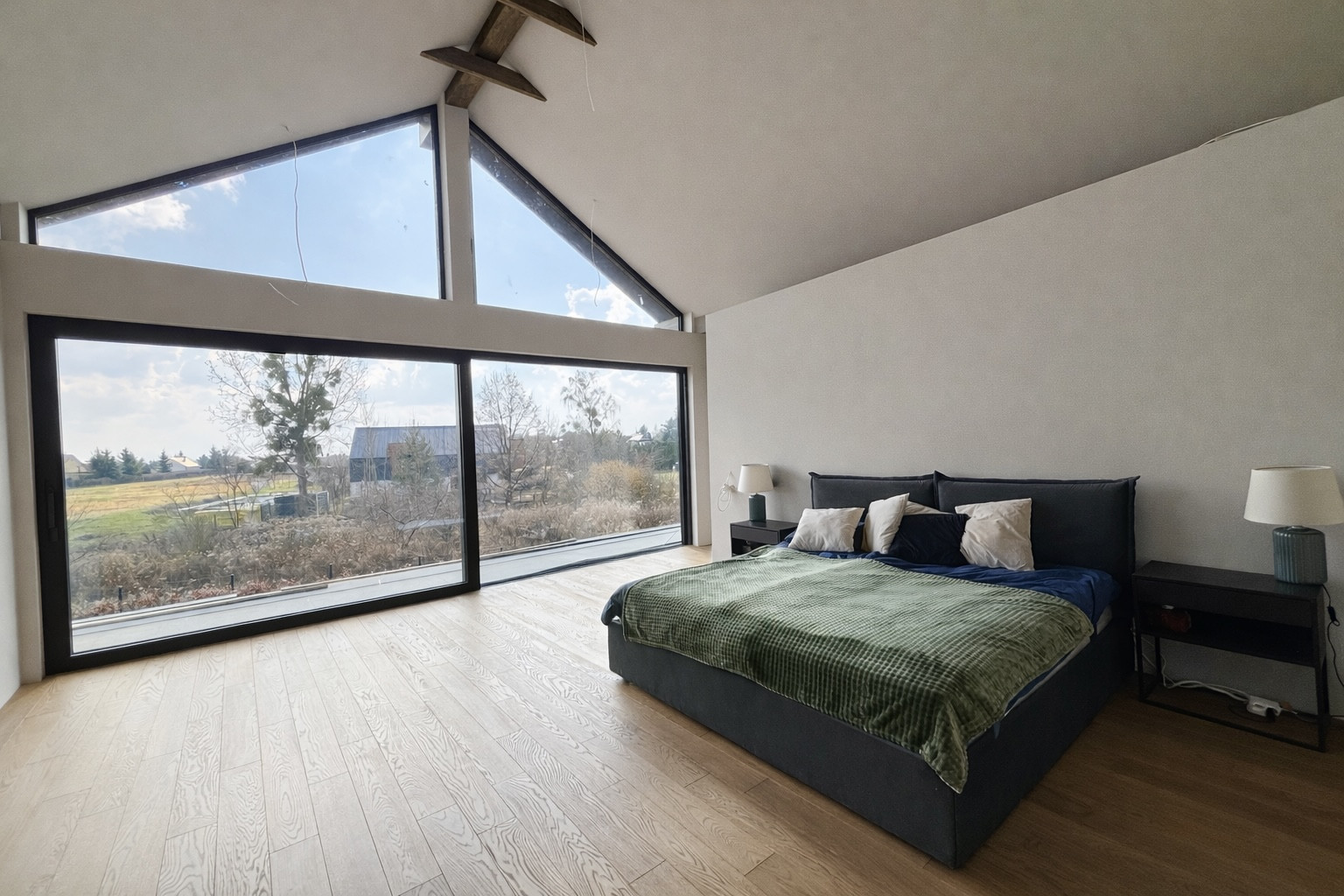 Piętro; prywatna strefa domowników zaprojektowana tak, aby zapewnić wyjątkowy komfort. Do dyspozycji 3 sypialnie i 2 łazienki.