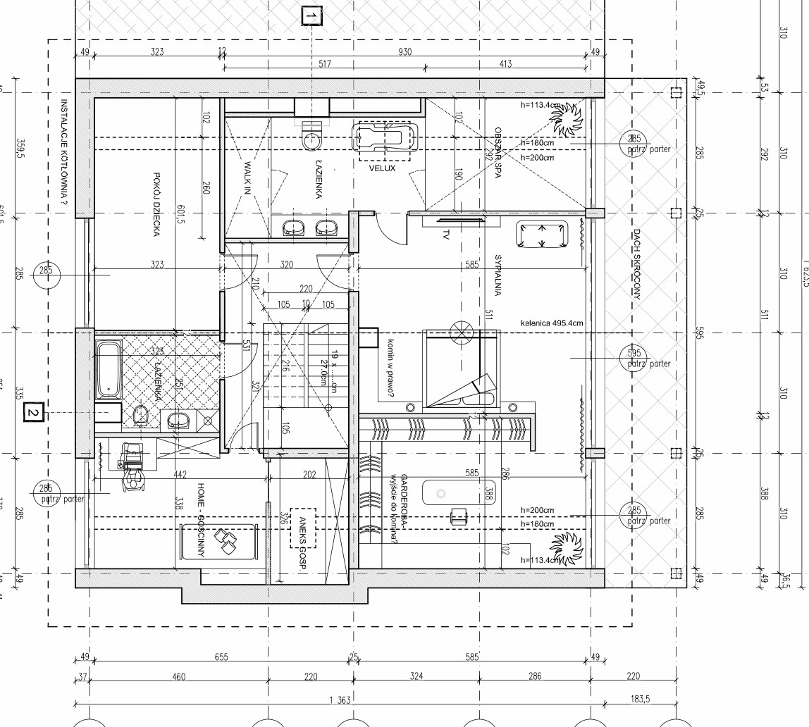 Dom wyposażony w nowoczesne rozwiązania - system smart home, klimatyzację kanałową na parterze, pompę ciepła, rekuperację oraz system monitoringu.