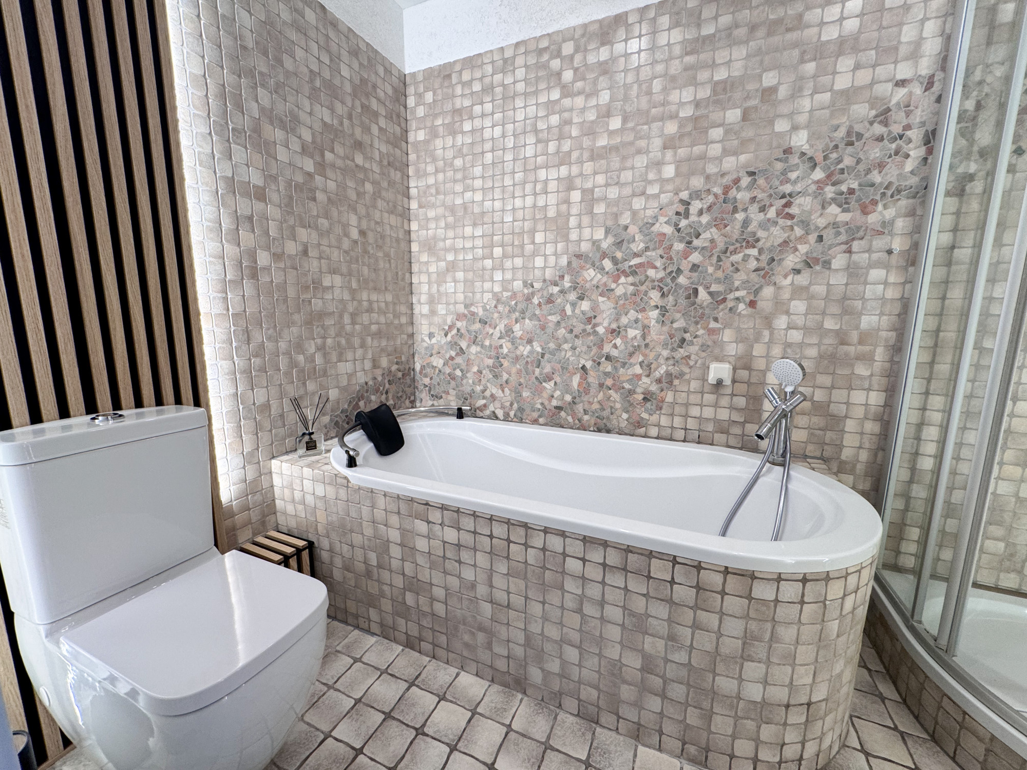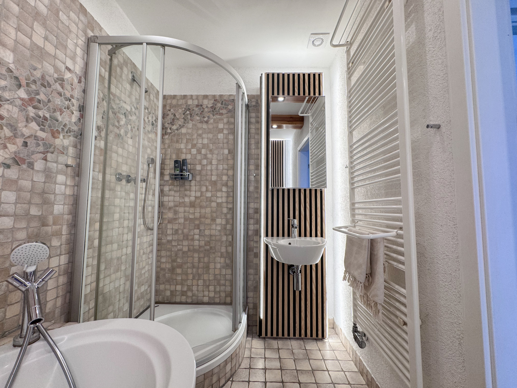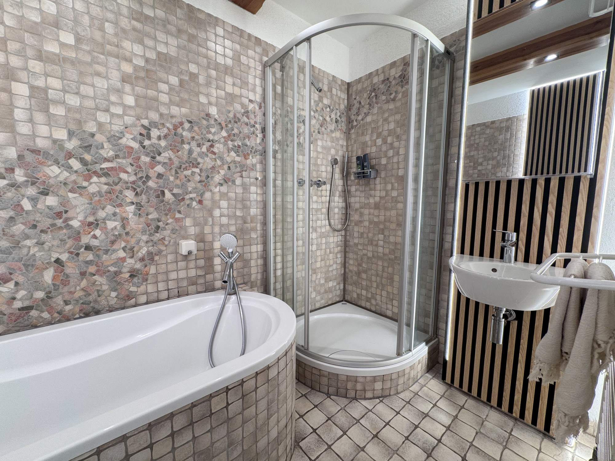 - łazienka z wanną i prysznicem.