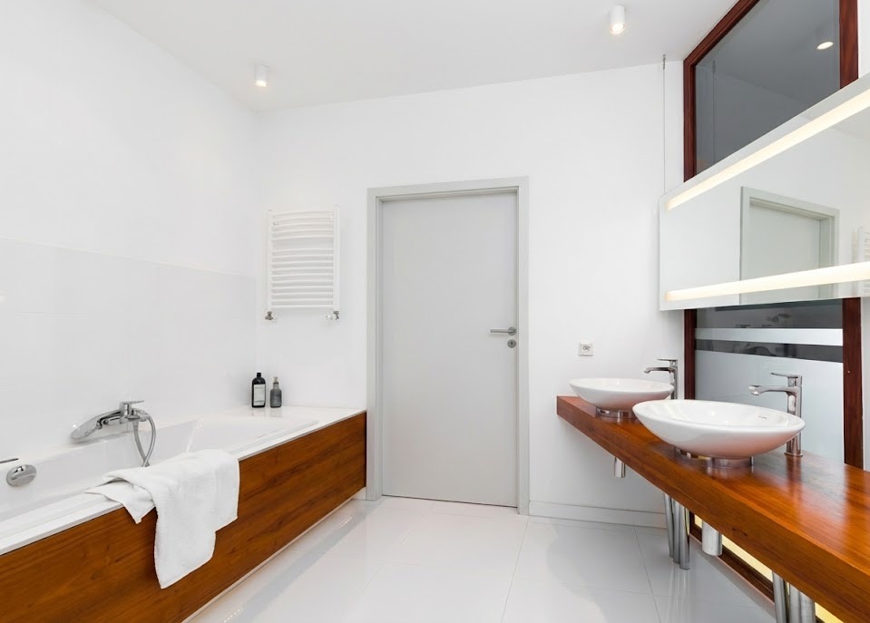 - główna sypialnia z prywatną łazienką (wanna, dwie umywalki, toaleta).