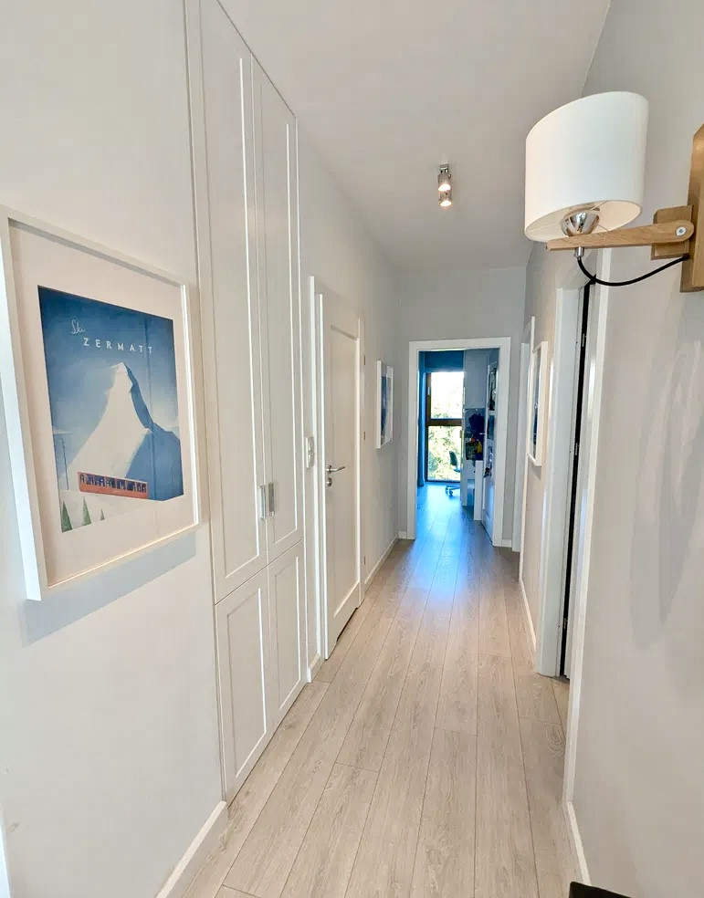 Lokal jest gotowy do zamieszkania, utrzymany w wysokim standardzie, z klimatyzacją oraz drewnianymi oknami. Funkcjonalny układ pomieszczeń sprawia, że mieszkanie doskonale sprawdzi się zarówno dla rodziny, jak i osób pracujących zdalnie.