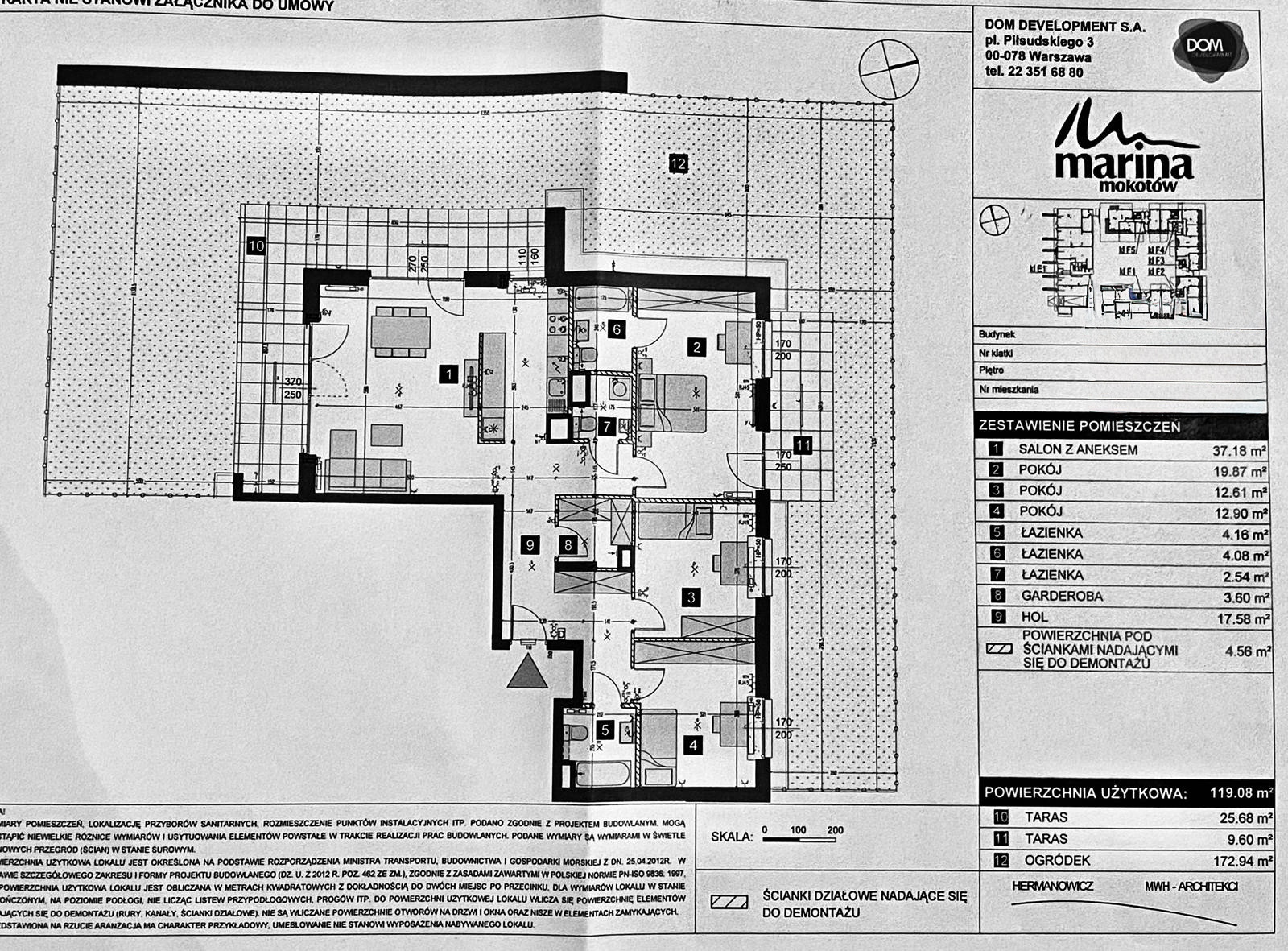 Mam przyjemność zaprezentować Państwu nowoczesny, 4-pokojowy apartament o powierzchni 119 m², położony na prestiżowym osiedlu Marina Mokotów II, przy ulicy Białej Floty w Warszawie.