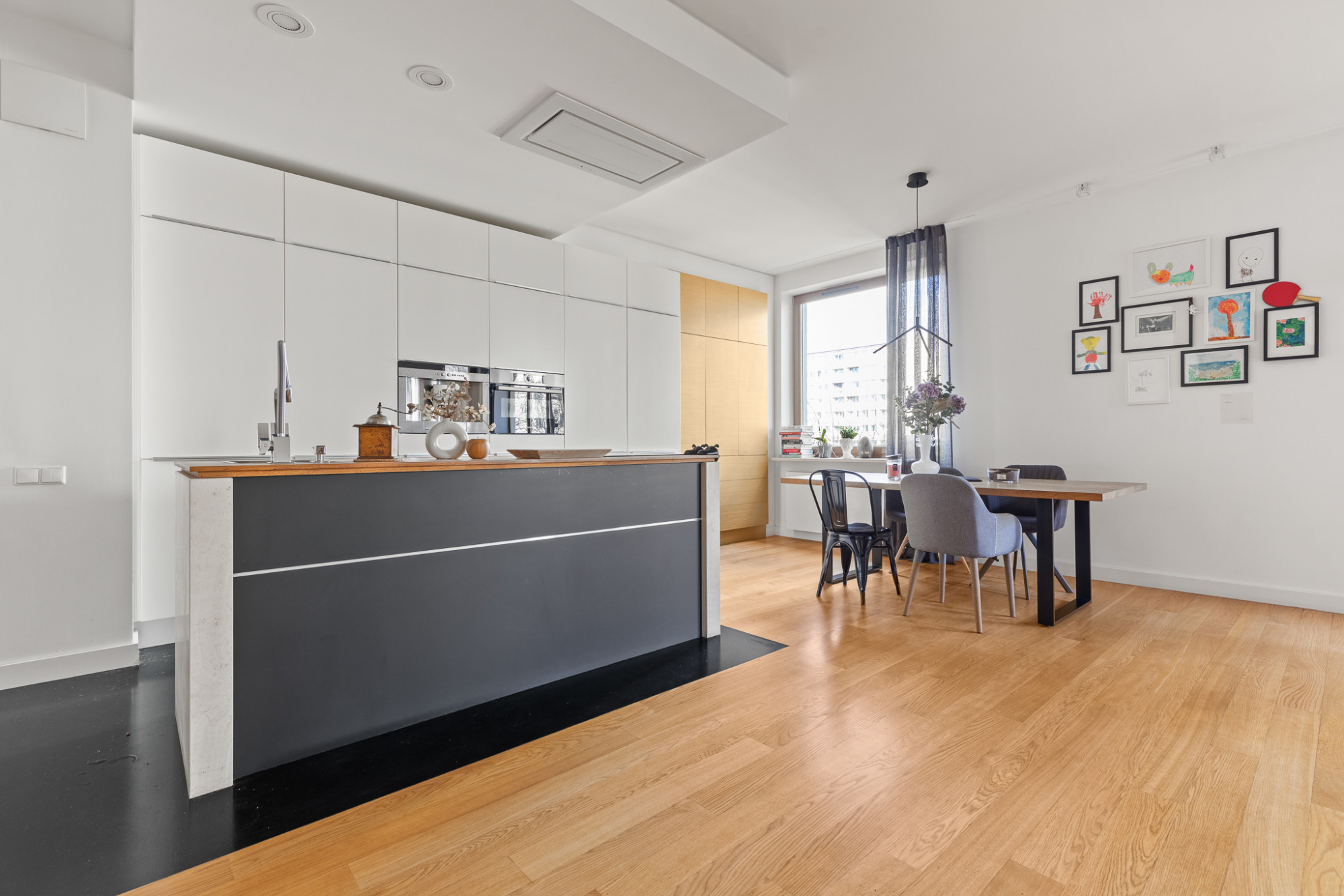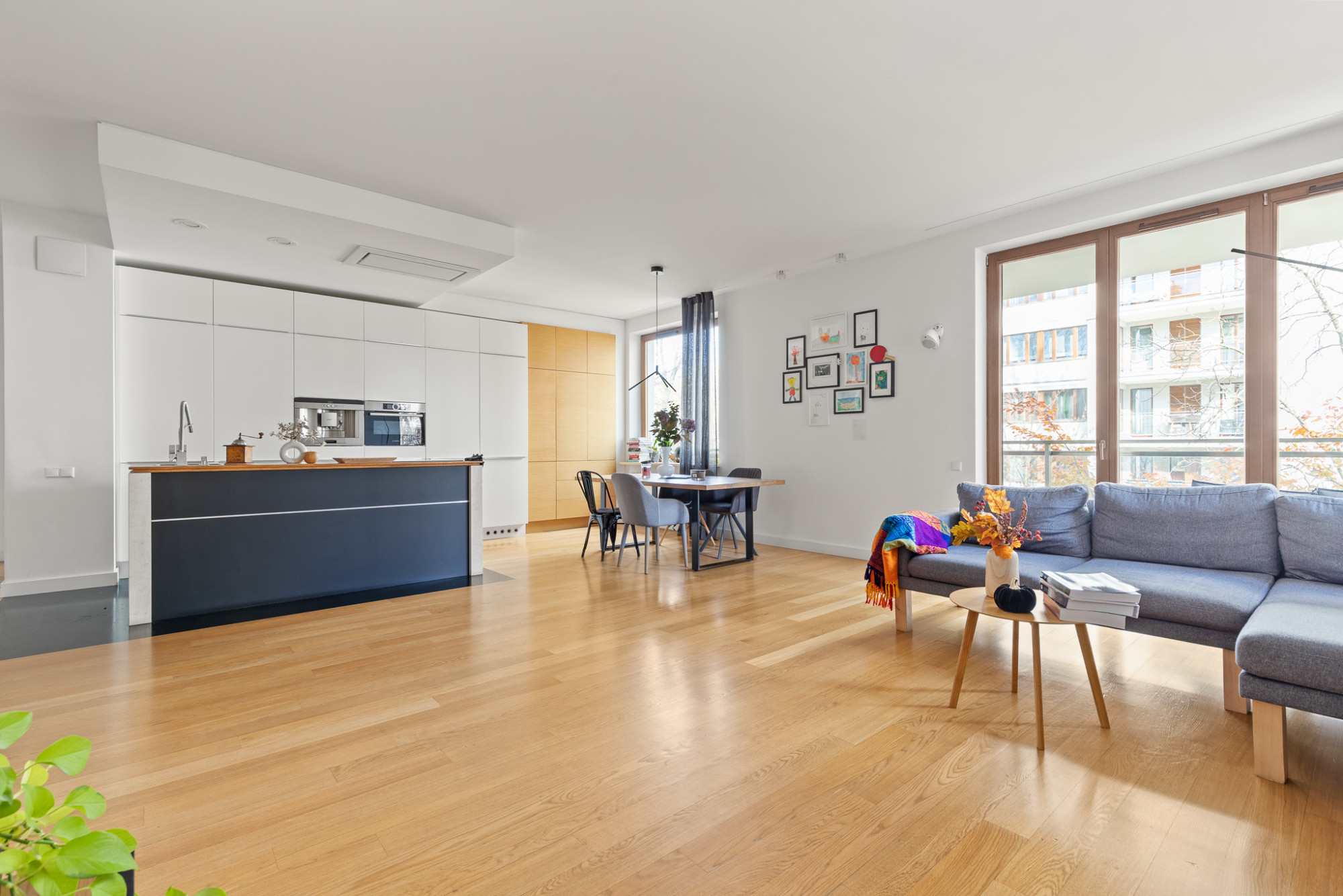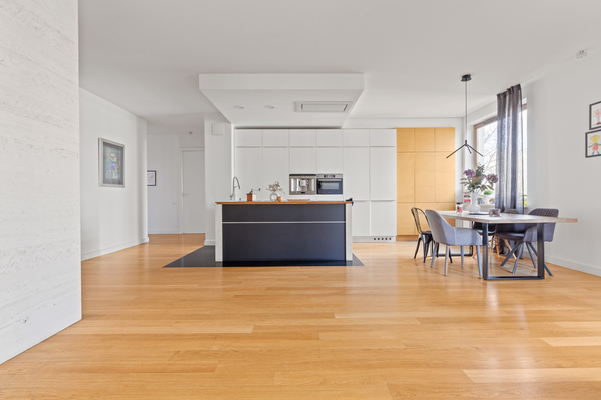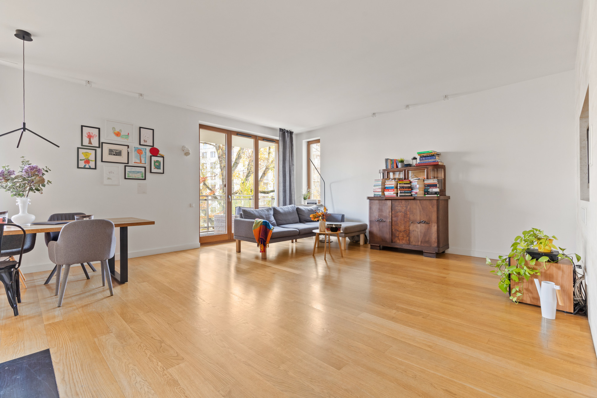 To przestronne, pełne światła wnętrze z wyraźnym podziałem na część dzienną i prywatną - idealne dla osób ceniących komfort, funkcjonalność i bliskość natury w centrum miasta.