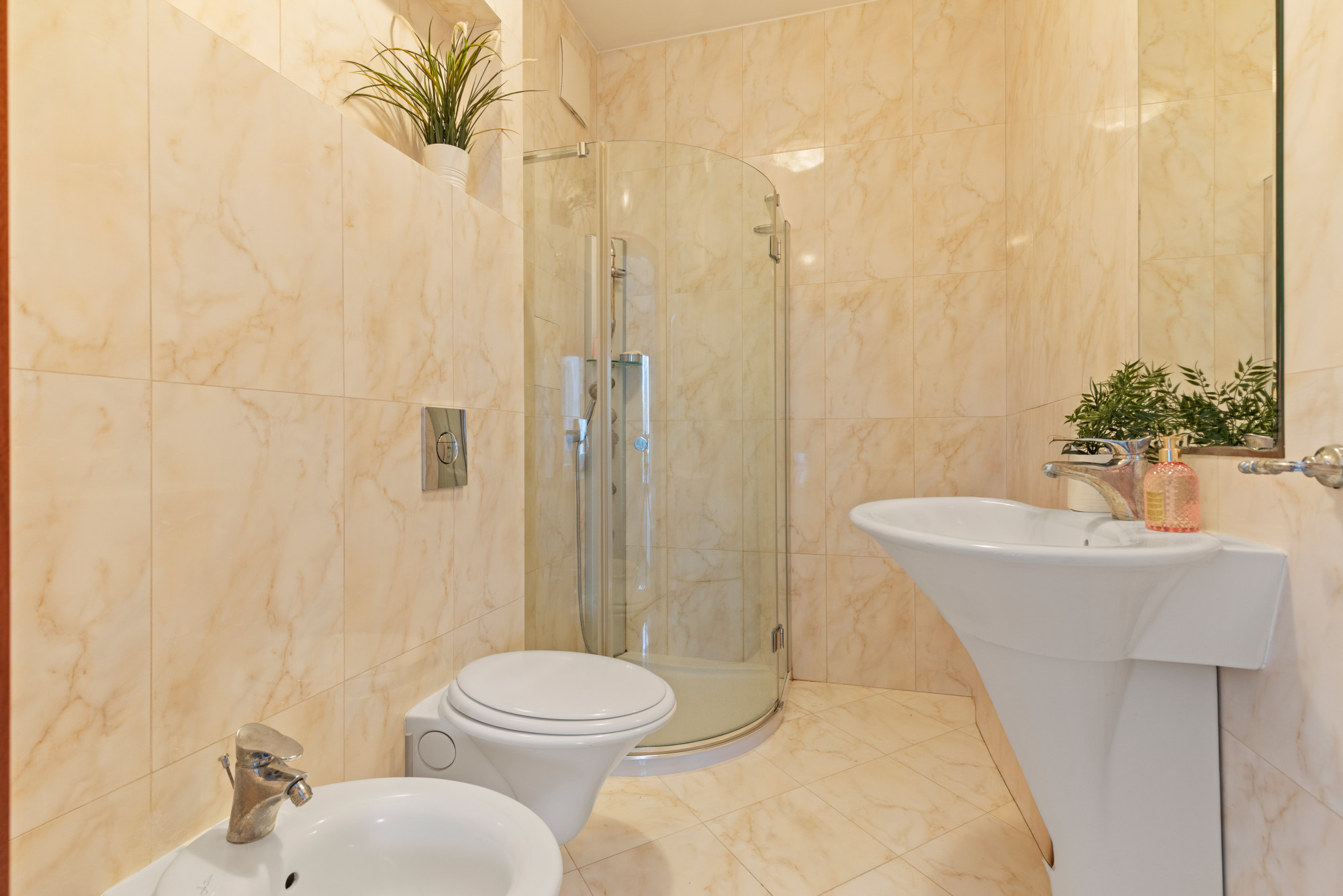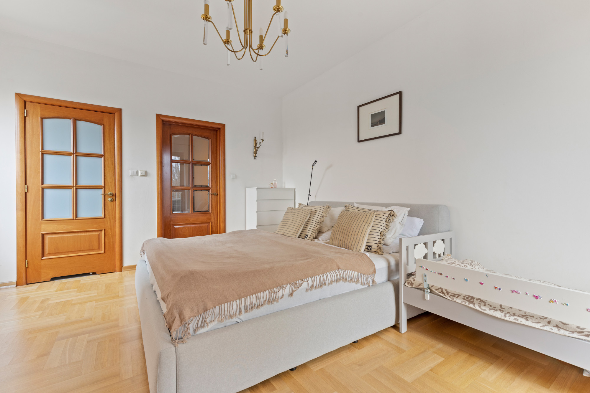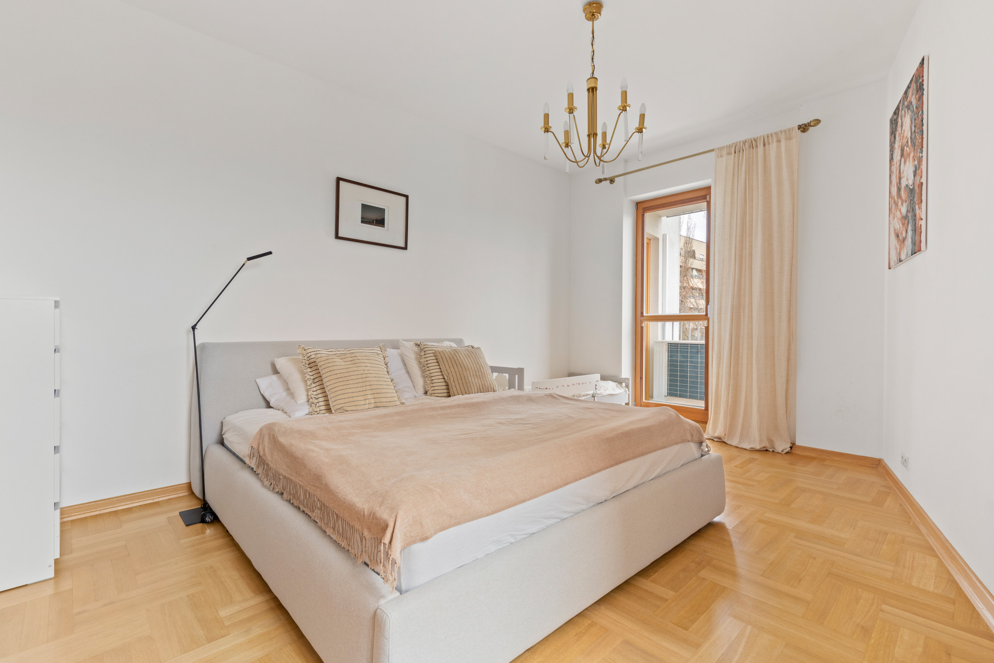 Sypialnia główna posiada wyjście na balkon oraz prywatną łazienkę z prysznicem i bidetem.