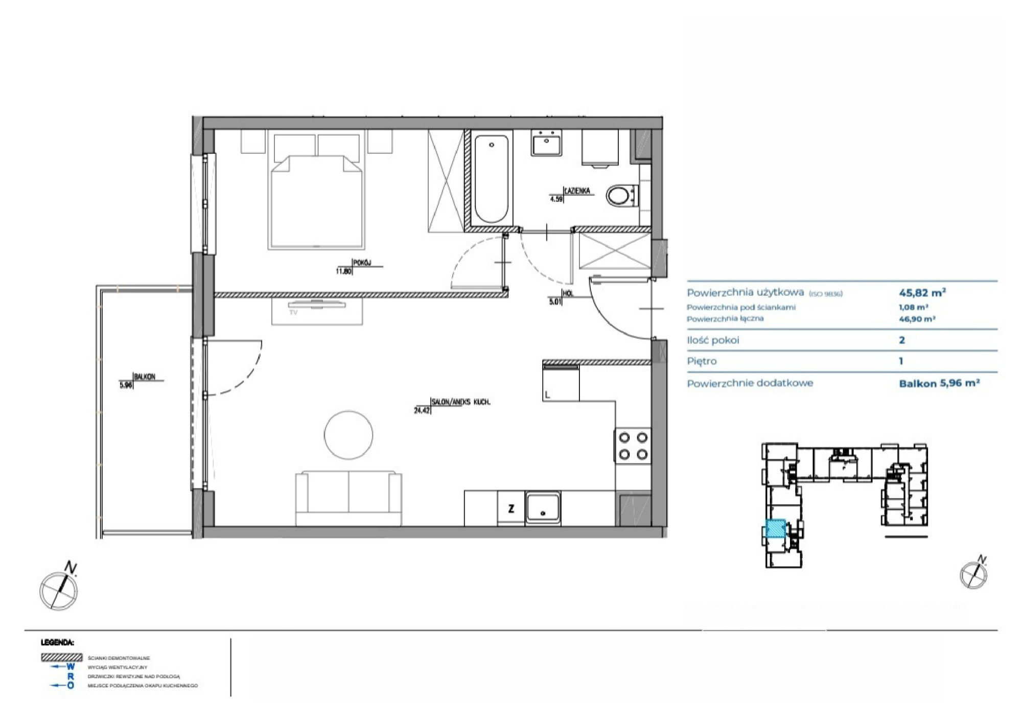 ROZKŁAD POMIESZCZEŃ- pokój dzienny z aneksem 24,42 m2