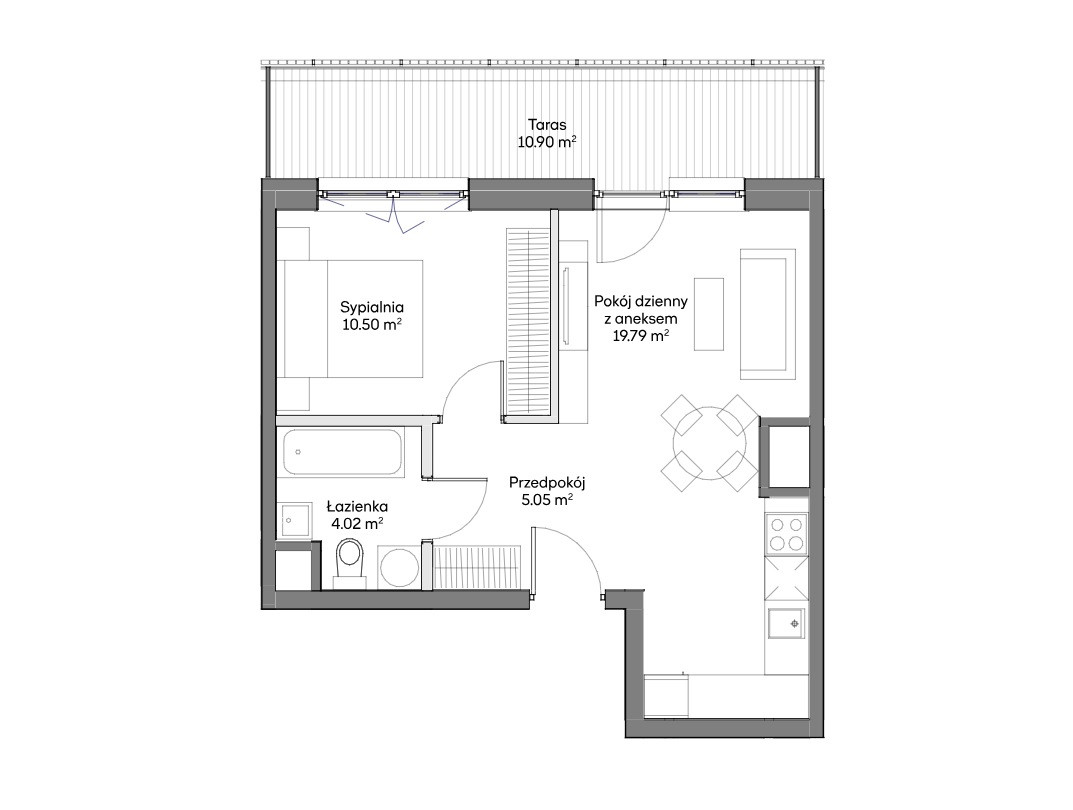 ROZKŁAD POMIESZCZEŃ- Sypialnia 10.50 m2