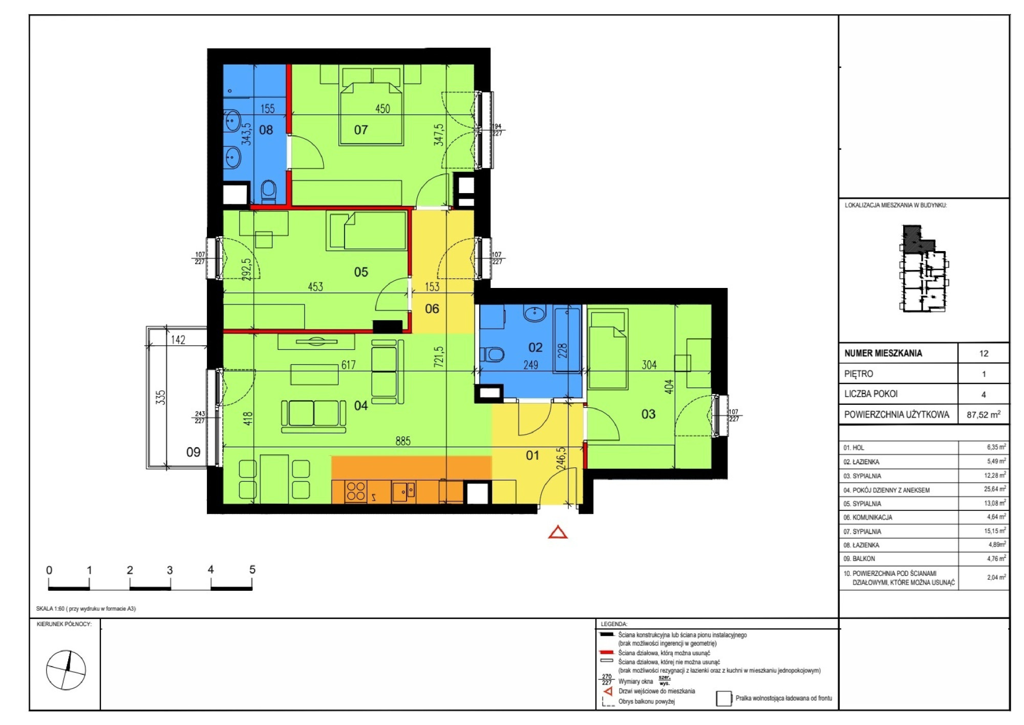 Powierzchnia użytkowa: 87,52 m²