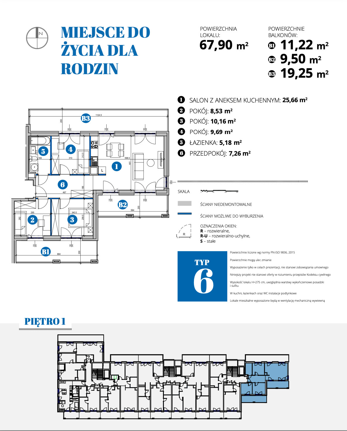 ROZKŁAD POMIESZCZEŃ:- salon z aneksem kuchennym- 25,66 m2