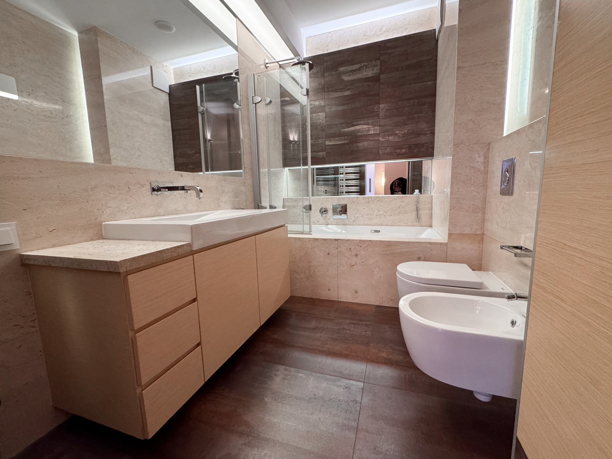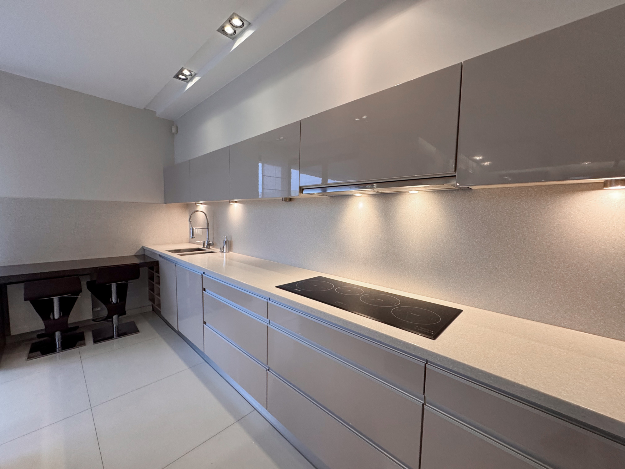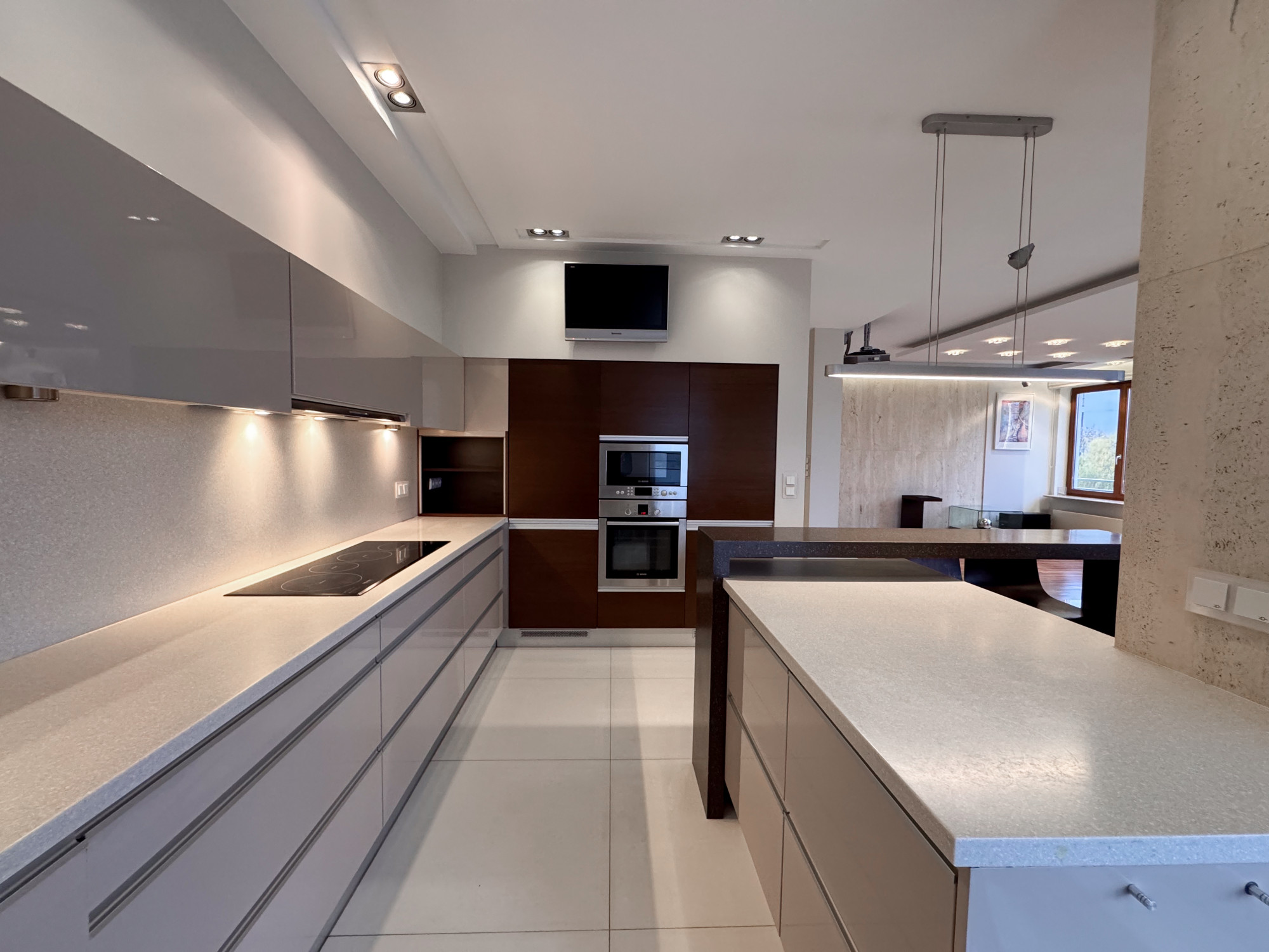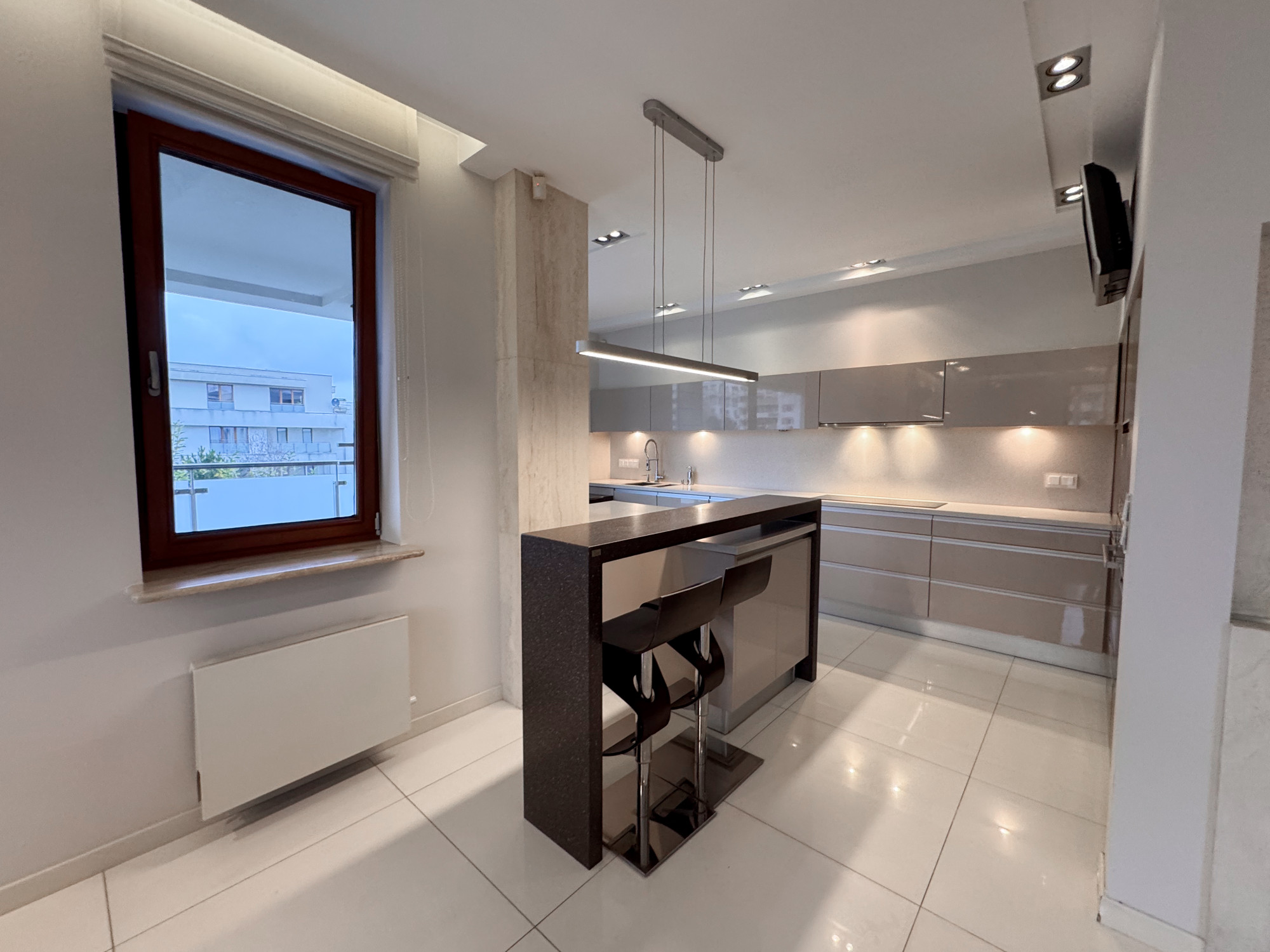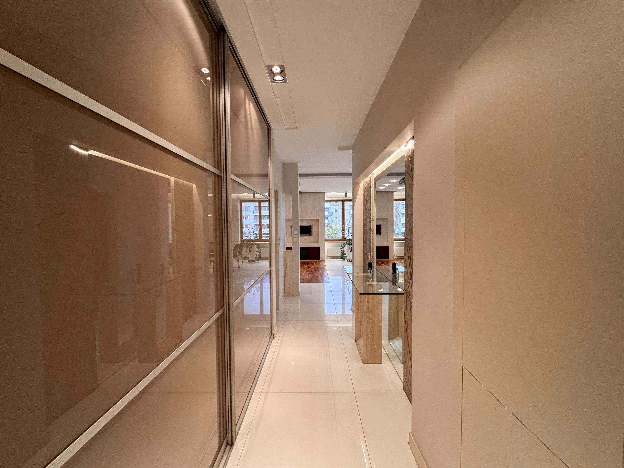 Ten starannie zaprojektowany 5-pokojowy apartament o powierzchni 160 m² to idealne miejsce dla rodziny lub osób ceniących przestrzeń, jakość i funkcjonalność. Wnętrza zostały wykończone z wykorzystaniem wysokiej klasy materiałów oraz wyposażone w sprzęty, meble wykonane na wymiar. Całość uzupełnia klimatyzacja, która zapewnia komfort przez cały rok.