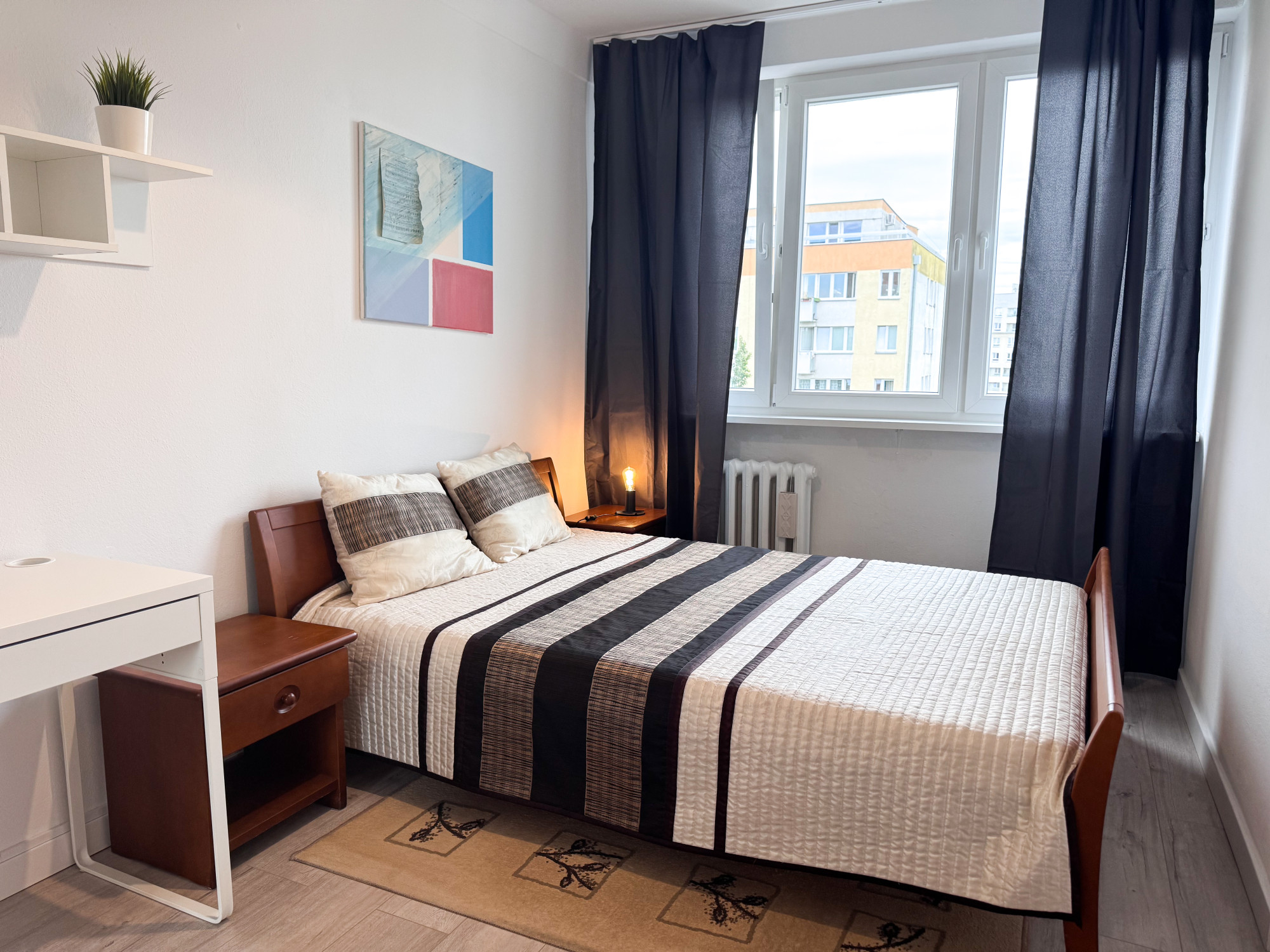 PropertyThe apartment is located on the 9th floor in a building with two elevators. The balcony offers a beautiful view to the west. The apartment has recently undergone a complete renovation and is fully furnished and ready to move in - the tenant will be the first to move in after the renovation.